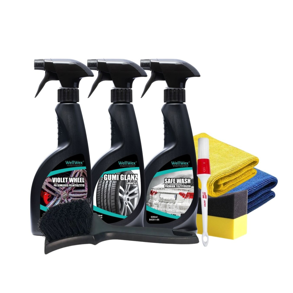 - a Safe Wash tisztítószerrel fújd be a gumikat
