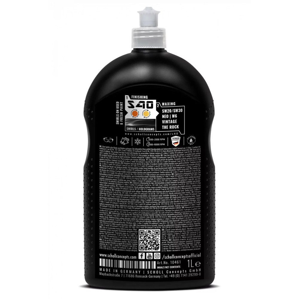 Mikrofinom dörzsölő keverék a homályosodás és a hologramok tartós eltávolítására sötét fényezésről, valamint a finom karcolásokról. Az S40 kiemelkedő végső felületet biztosít, és páratlan mély, tükörszerű fényt hagy maga után. A Premium Polish egyszerű kezelése és könnyű felhordása lenyűgözi Önt.